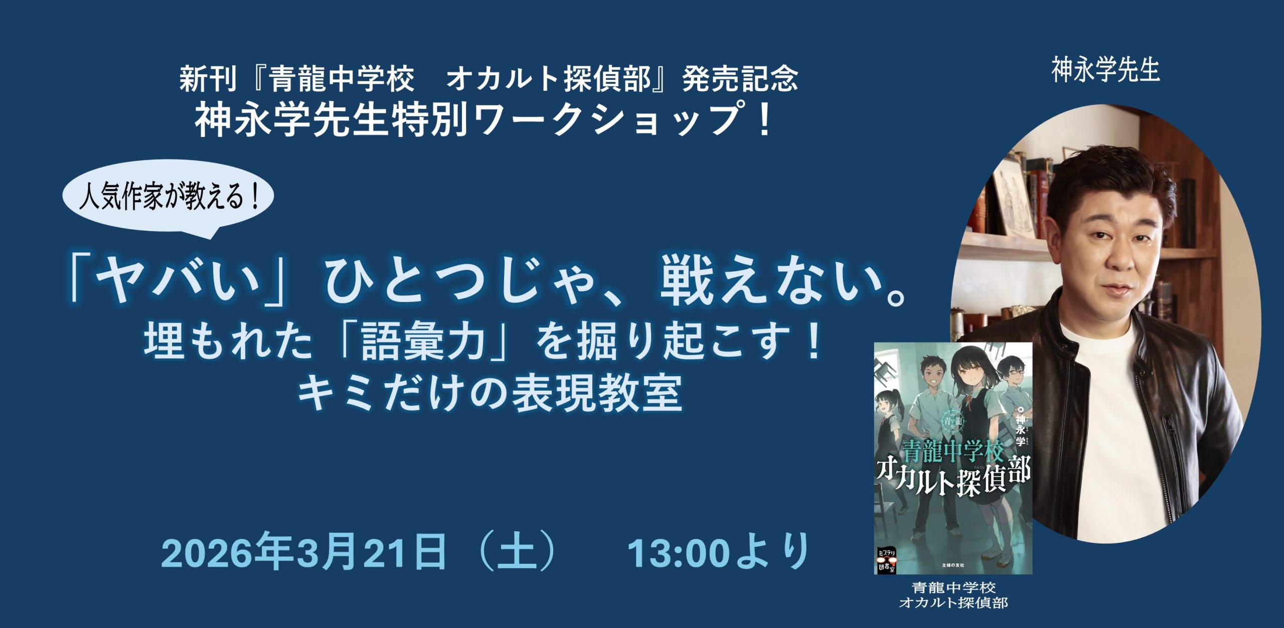 Gallery Bイベント 開催前2026.03.21 Sat - 2026.03.21 Sat【小学生対象】【神永学先生特別ワークショップ】[ヤバい」ひとつじゃ、戦えない。 ~人気作家が教える、埋もれた「語彙力」を掘り起こす!キミだけの表現教室~