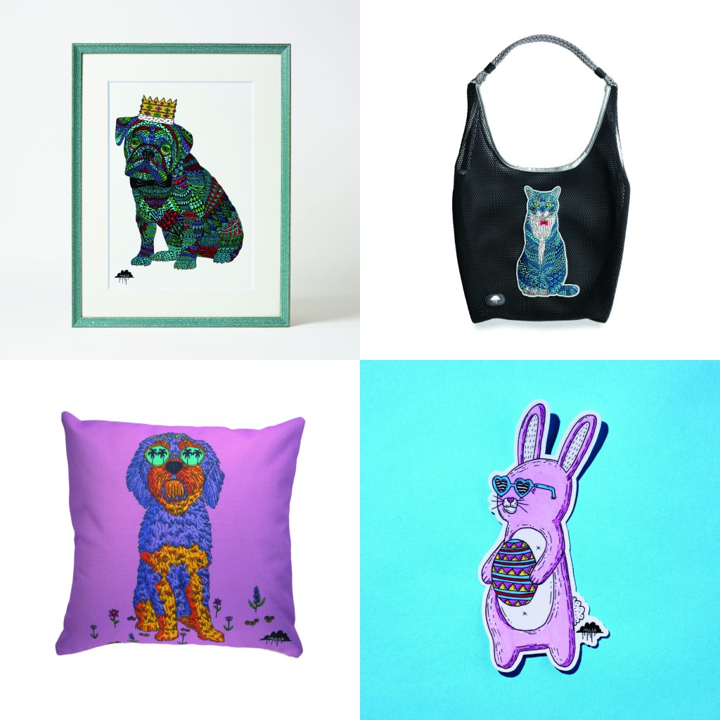 アート作品(キャンバスプリント・A4ポスタープリント)に加え、バッグ、アパレル、ステッカー、クッションカバーなど豊富なラインアップを展開いたします。