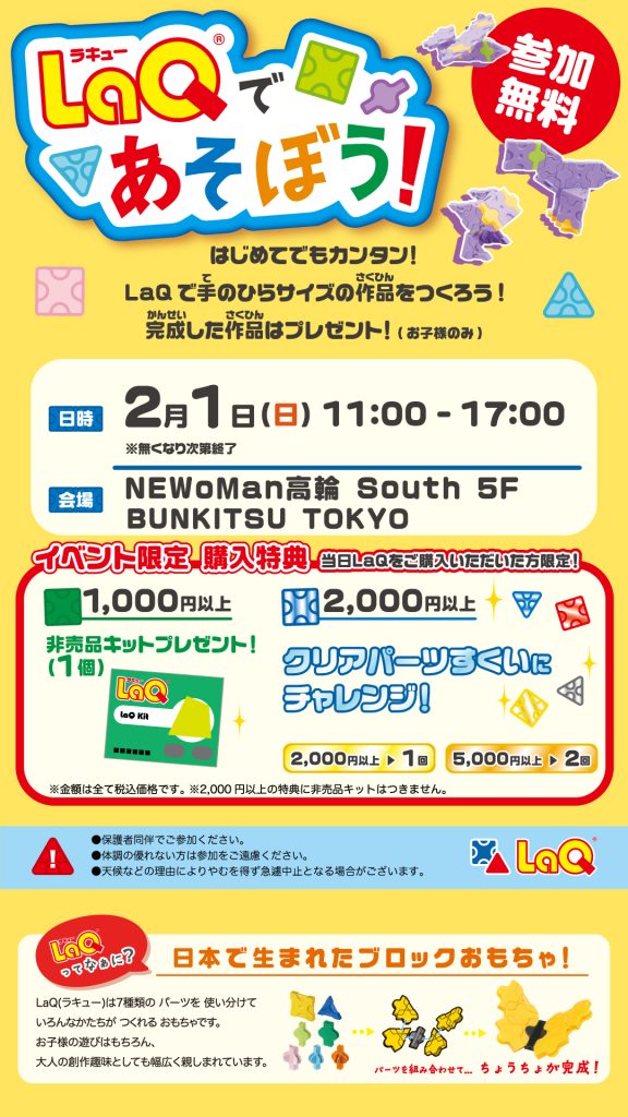 知育パズルブロックのLaQ(ラキュー)の無料体験イベントを開催します